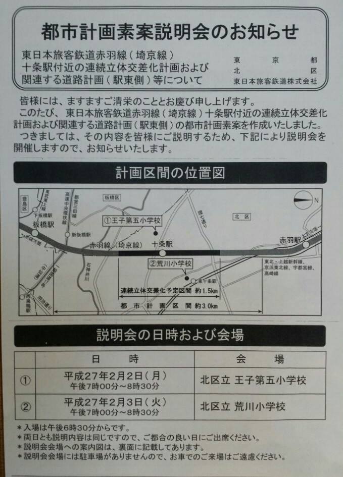 確かに、十条駅は線路・踏切の高架化or地下化が計画されているので、線路周辺がまったく無影響とは考えていませんでしたが、ここまで大がかりな計画が突然発表されるとは…。