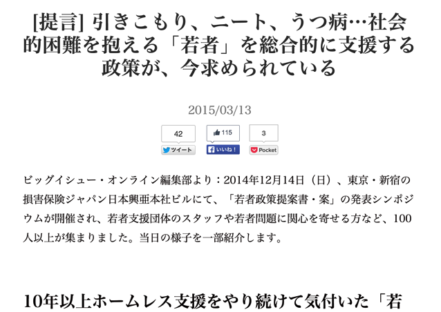 画像を見る自分も多少関わっておいてなんですが、ビッグイシュー基金がこのような「政策提言」をしているのは、本当にすばらしいことだと思うんです。