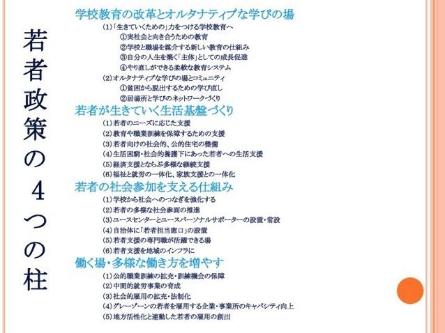 画像を見る先日、「[提言] 引きこもり、ニート、うつ病…社会的困難を抱える「若者」を総合的に支援する政策が、今求められている」という記事をアップしました。こちらは「若者政策提案書」の原案発表シンポジウムの書き起こしで、委員会がまとめた本格的な「若者政策」の方向が語られています。