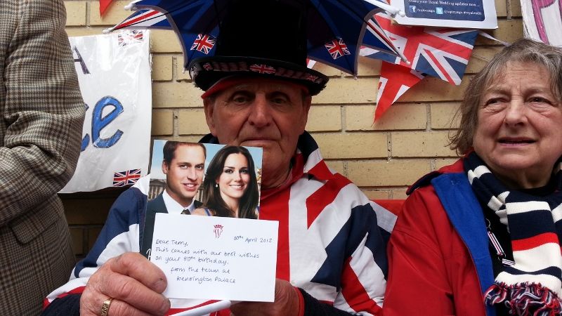 リンク先を見るウィリアム王子とキャサリン妃から誕生カードを贈られたテリー・ハットさん(同)