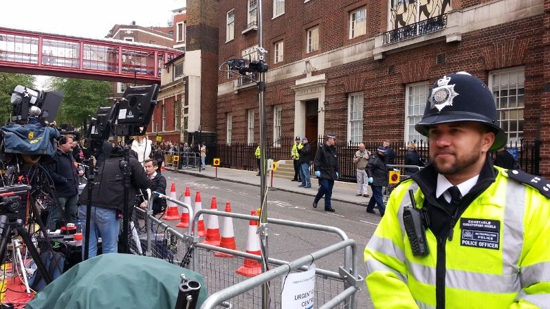 今回も誕生の公式発表はツィッターなどソーシャルメディアで流されました。同病院周辺を警らする警官はテロ防止のため、軽機関銃で武装していました。