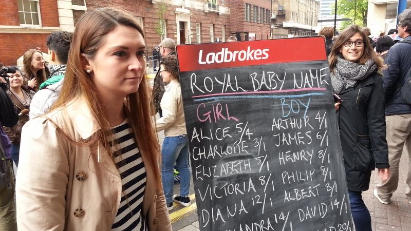 賭け屋ラドブロークスの予想では、女の子なら人気の高い名前は「アリス」「シャーロット」「エリザベス」「ビクリア」の順だそうです。