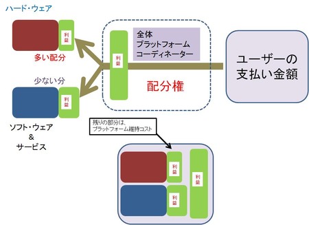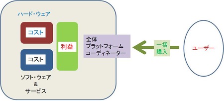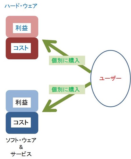 2番目の図が、ハードを買って、その後にソフトを買って、便益を享受するために、ハード企業とソフト企業のそれぞれに対価を支払うユーザーの様子