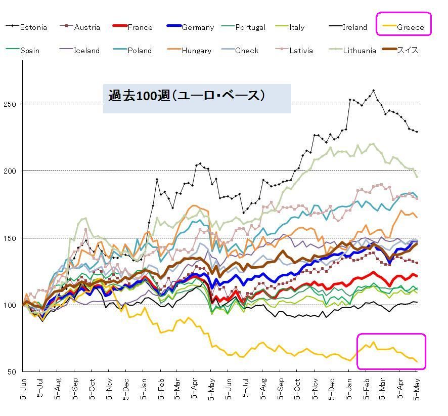 ギリシア株は長期低迷を続けています
