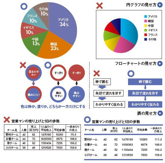 円グラフの見せ方/フローチャートの見せ方/表の見せ方