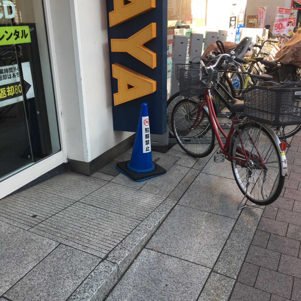例えば我々が車椅子で入店実験をしている横で、平然とスロープの前に違法駐輪していく人がおりました。