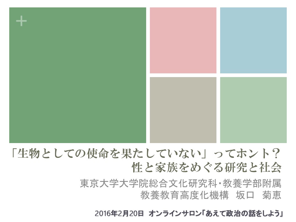『「生物としての使命を果たしていない」ってホント?性と家族をめぐる研究と社会 』と題して、いま話題のLGBT・同性婚などについて、学術的な見地から講演と活発な議論が行われました。