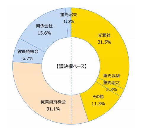 こちらにあるように「過半数」ということで否決。議決権ベースで鍵を握る第2株主の従業員持株会(約31%、グラフ参照)は今回の臨時株主総会については、次男サイドに回ったとみられるわけですが、賛否の比率は議長役の佃社長から開示はされなかった模様。