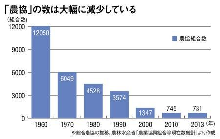 「農協」の数は大幅に減少している