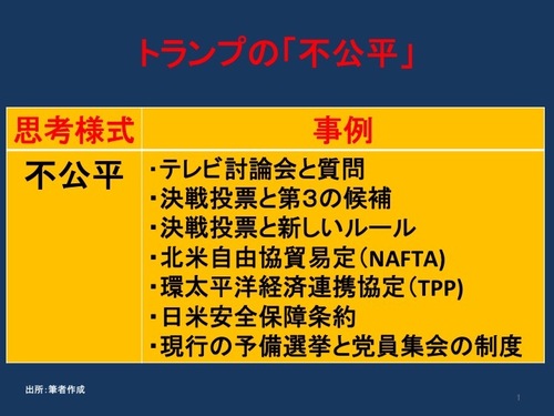 トランプ候補の思考様式で看過できないのが「不公平」です(図表)。