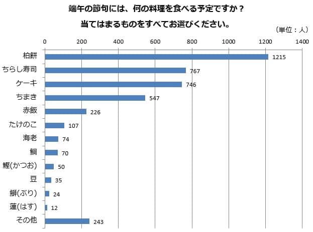 お祝いといえば、お食事。伝統的な行事であれば、行事にちなんだお料理をいただきたいですね。端午の節句といえば、何を食べますか? アンケートで尋ねてみました。