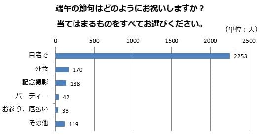 5月といえば、こどもの日。端午の節句、菖蒲(しょうぶ)の節句とも言われ、菖蒲湯に入ることで、無病息災を願った日なのだそう。また女の子の桃の節句に対して男の子の誕生と成長をお祝いする日でもあります。伝統的な行事ですが、最近はどのようにお祝いしているのでしょうか。アンケートで聞いてみました。