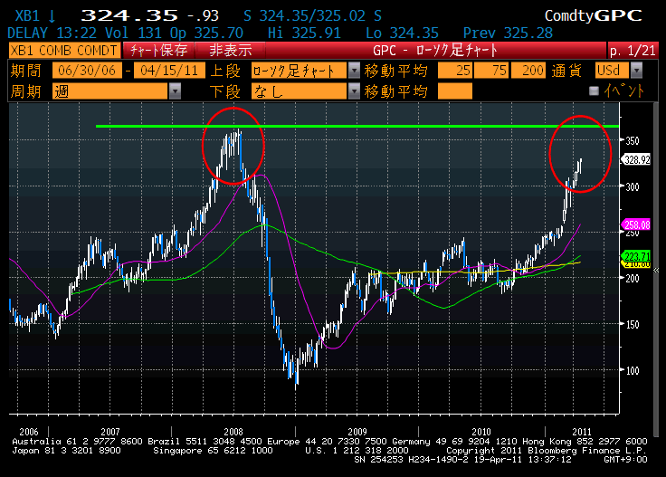 WTI原油先物は、110ドル前後で、前回高値(2008年)まで、まだ、25%くらい余裕があります。