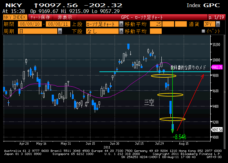 ともかく、この形が出現してので、明日、窓を空けなければ、この近辺が買い場となる可能性が高いことを示唆しています。