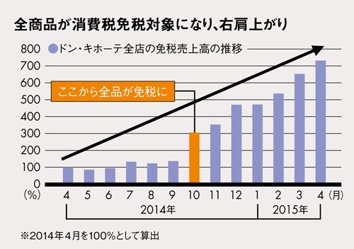中村氏は同時に、従来品目が限られていた消費税の免税対象を一定条件下で全品に拡大する法改正を求める働きかけにも参画。これを実現に導き(14年10月から拡大)、訪日消費増大へと結びつけていった。7年間でドン・キホーテをインバウンドの勝ち組へ押し上げ、斯界の第一人者となった中村氏は戦略のポイントをこう話す。