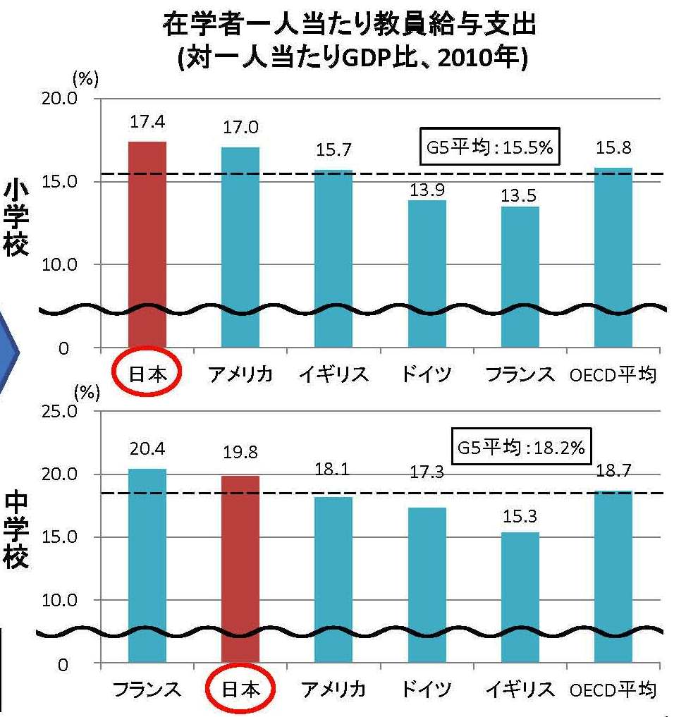 そこで、国の動きを見てみると、日本は小中学校、特に教員にお金をかけすぎと財務省が指摘していることが分かった。
