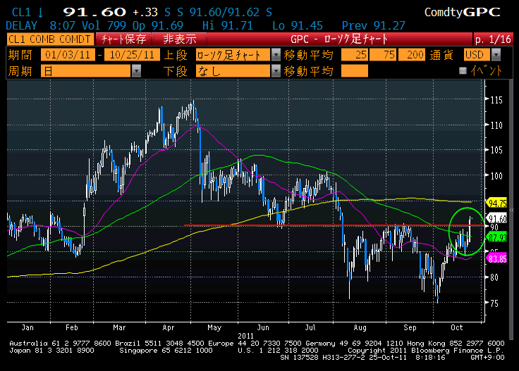 8月以降の上値抵抗ラインである90ドルを突破してきました。