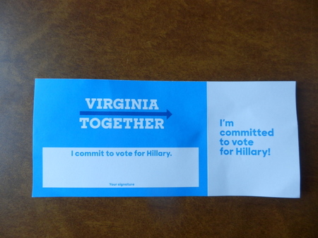 英語のコミットメントには、「約束」「同意」及び「関与」という意味があります。12年米大統領選挙で、オバマ陣営が投票率を高めるために導入したのがコミットメントカードです。16年民主党候補指名争いにおいて、クリントン陣営は中西部アイオワ州並びに東部ニューハンプシャー州でコミットメントカードを活用していました。本選においても、南部バージニア州で使用しています。本選のコミットメントカードには、民主党全国大会でクリントン候補が呼びかけた「一緒になればもっと強くなれる」の「一緒に」が印刷されています。