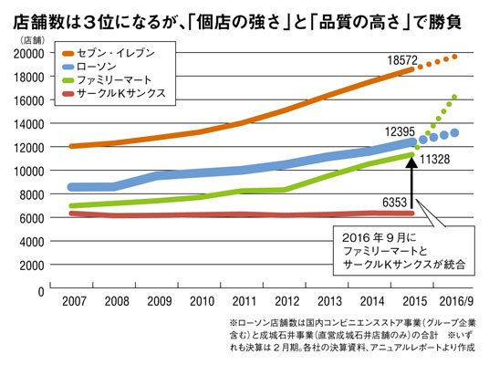 【弘兼】今年9月には、ファミリーマートがサークルKサンクスを傘下に持つユニーグループHDと経営統合します。合併後は約1万8000店となり業界首位のセブン-イレブンと肩を並べる。約1万2400店(16年2月末時点)のローソンは、2位から3位に転落します。