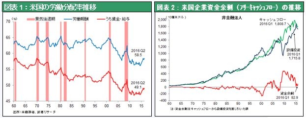 3) 景気拡大の後半戦、a) 労働分配率上昇➡企業はコストアップを価格転嫁する必要性強まる➡よりインフレ圧力へ b) 企業における資本余剰低下(設備投資増加、自社株買い・配当などの社外流出)による