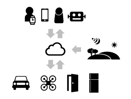 現時点でのAIは人間の脳のようには万能でなく、その役割は学習した分野などに特化している。そのため、分野特化の複数のAIが連携して1つの仕事をこなすことになる。AIは主にクラウドに配置されるが、今後は自動車やドローンや家電などの機器にも搭載されていくだろう。スマートフォンやウェアラブル機器やリビングルームのパーソナルアシスタントのAIは、音声やテキストやジェスチャーや画像などでユーザと対話する。そしてセンサーを搭載したIoTのデバイスは、クラウドのAIに情報を供給し続ける。そのように遍在したAIの連携、すなわちネットワークが次のプラットホームになると考えられる。