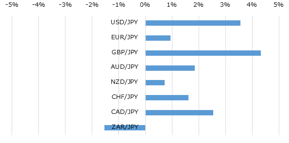 主要通貨の週間パフォーマンス(2016/11/4-11/11)