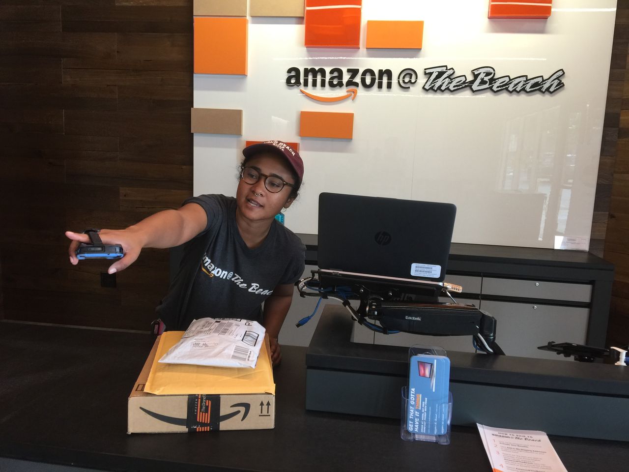 トップ画像:カリフォルニア州立大学ロングビーチ校(CSULB)にあるアマゾンのピックアップ拠点「アマゾン・アット・ザ・ビーチ(Amazon at the Beach)」。ピックアップ拠点では、注文品を受け取る以上に返品する人が多いのに驚く。