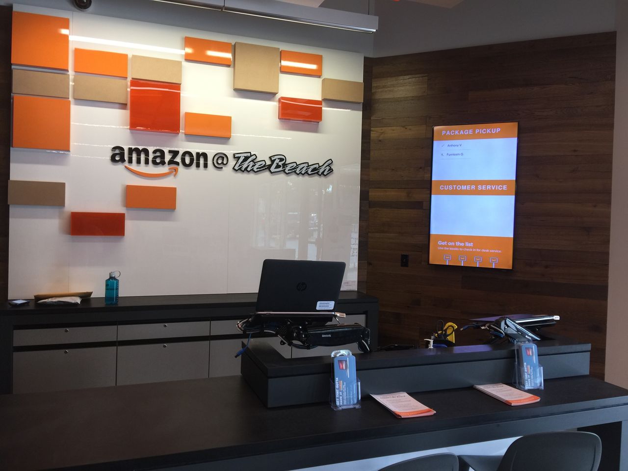 最初に向かったのは外食チェーンのチックフィレ。同社のアプリ「チックフィレ・ワン」経由で事前に注文と決済を行うことで、レジ待ちすることなく店では注文品を受け取れる。ロサンゼルス郊外シールビーチにある店舗に到着したのは正午頃。繁盛店のチックフィレが入ったショッピングセンターは、パーキングもいっぱいで車を停めるのに少々時間がかかったほど。店に入っても、レジの長い行列には並ばず、アプリから注文。「ここにいます(I'm here)」をタップして3分程度でスタッフから「フミトシ!」と名前が呼ばれて注文品がでてきた。3分と言っても待たされた気はまったくしない。まるで先に準備されていたかのような速さに感じた。次に向かったのはカリフォルニア州立大学ロングビーチ校(CSULB)にあるアマゾンのピックアップ拠点「アマゾン・アット・ザ・ビーチ」。数日前までニューヨークに出張していたため注文品をピックアップ拠点に取り置きしていたのだ。キャンパス内の「アマゾン・アット・ザ・ビーチ(Amazon at the Beach)」にある端末から自分のメルアドでチェックイン。カウンターの奥にある電子パネルに名前が映し出され1分もしないうちにスタッフが注文品を持ってきてくれた。ID(身分証明書)の確認の後、パッケージを受け取って完了。店内を撮影する時間もないほどの速さだ。