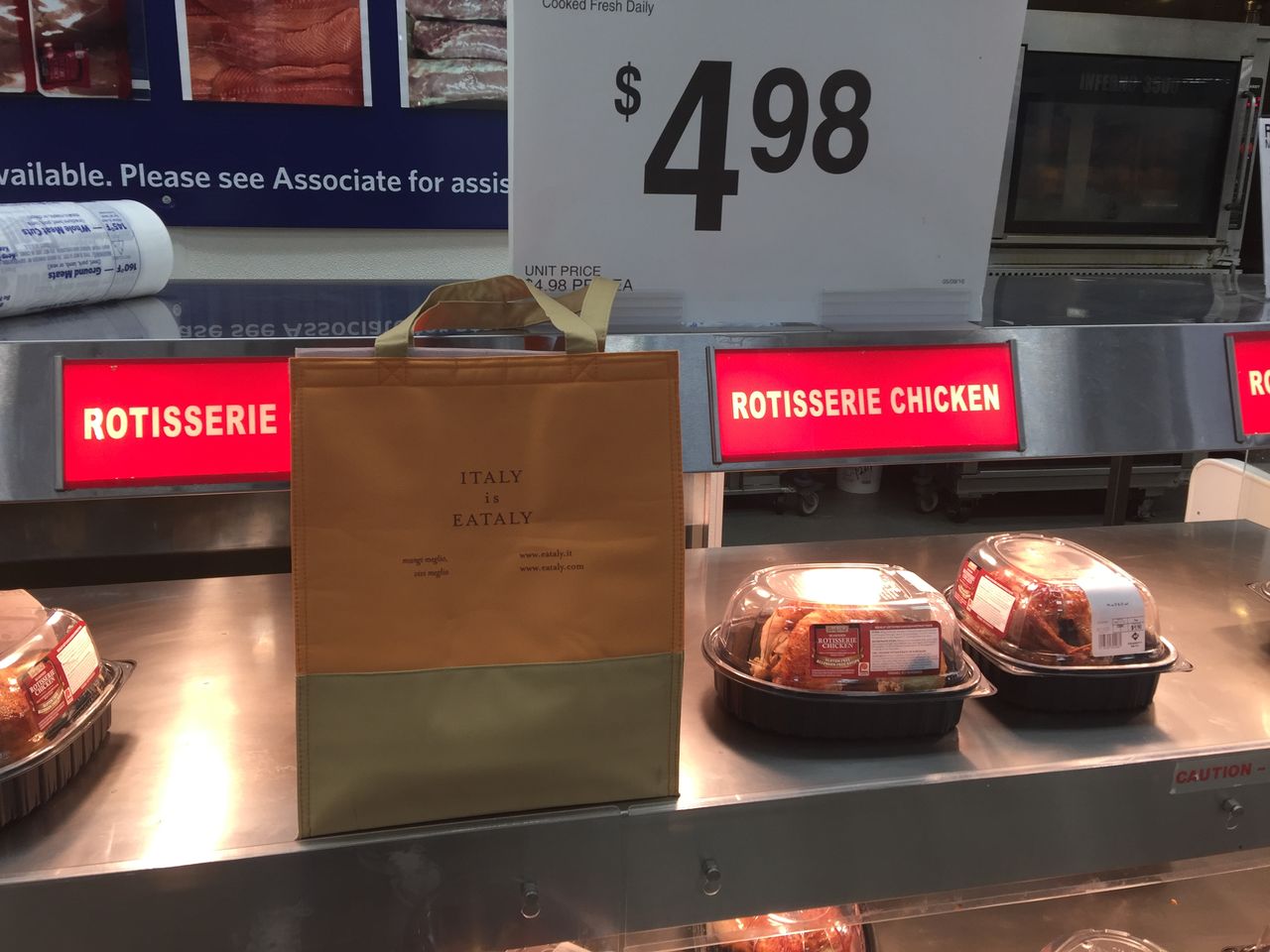 サムズクラブで「スキャン&ゴー(Scan & Go)」のショッピング。ロテッサリーチキンをスキャンした後、即座に決済。もうレジを通ることがないので、その場でイータリーの保温バッグに詰めた。そのまま出口に向かいチェッカーにアプリ・バーコードをスキャンさせ店を後に。ここでもレジなどの「待ち時間」は全くない。