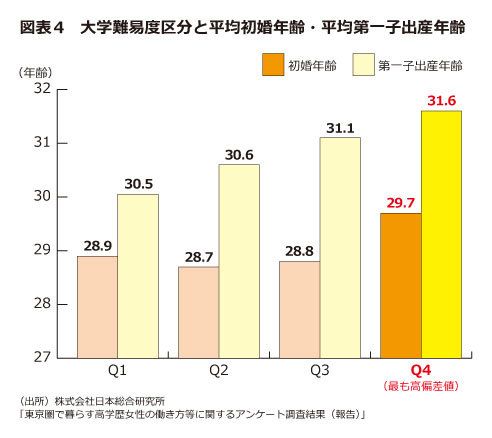 図表4 大学難易度区分と平均初婚年齢・平均第一子出産年齢