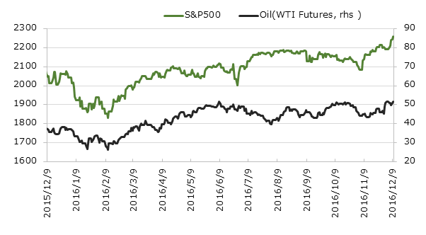 | Oil(WTI Futures): | 51.5, | -0.3% (1w), | +39.0% (YTD) |