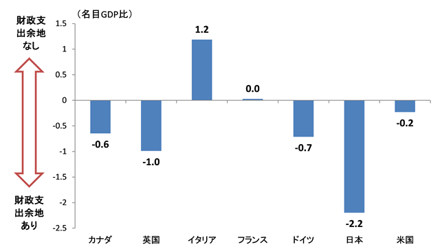 図表4 中期(2016年~17年)における各国財政余地