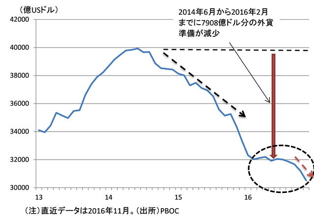 だが、中国経済の動向について不安な点が無いのかと言われればそんなことはない。図表9は中国の外貨準備高の推移をみている。2014年春から2016年にかけて外貨準備高は大きく減少したが、これは人民元レートの安定的推移を担保することが目的であった。