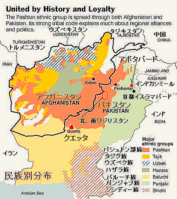 右は、クエッタリンク先を見るの位置とアフガン、パキスタンの部族分布の地図で、ピンク色のパシュトン族とタリバンなどテロ組織の活動地域が一致し、宗派対立と合わせ、自治権の拡大を求め部族対立もあるといわれている。パキスタンではパシュトン族は少数派で、パキスタン北西部で独自の文化圏を持っているため、パキスタン政府と対立する事が多い。参照記事