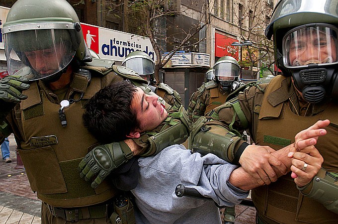 教育費の国民負担がもっとも重いとされたチリでは、大学生の大規模なデモが起こり、政府と大学生側の交渉が失敗に終わり、2011年10月6日、首都サンチアゴでは大規模な衝突が発生した。南米チリで学生連合会の代表を務める学生運動家は女性で、彼女の名は「カミラ・バジェホ Camila Vallejo(チリ学連委員長)写真」。カミラ氏は、チリ国内の教育制度に改革を起こすべく、なんと大統領を相手に真っ向から交渉し、無料の、高い質の公教育という要求している。(写真)