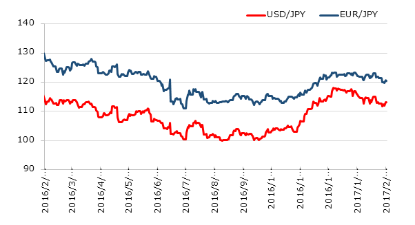 主要通貨の週間パフォーマンス(2017/2/3-2/10)