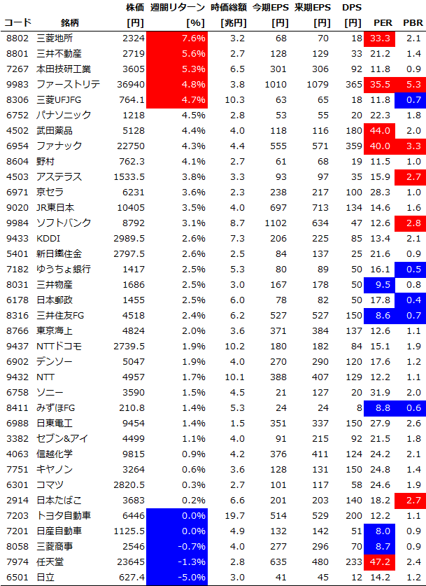 個別銘柄の週間パフォーマンス(2017/2/3-2/10)