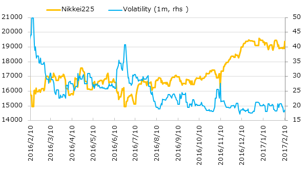 直近1年の日経平均株価とインプライド・ボラティリティの推移画像を見る