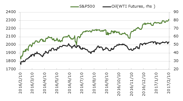 直近1年のS&P500と原油価格(WTI原油先物)の推移[USD]画像を見る