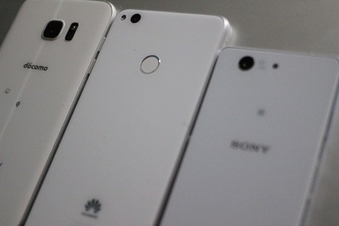 画像を見る背面がガラスということで左から5.5インチのGalaxy S7 edge、5.2インチのnova lite、4.6インチのXperia Z3 Compact