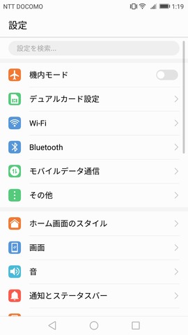 ホーム画面(画像=左)と設定画面(画像=右)。OSはAndroid 7.0(開発コード名:Nougat)で、独自ユーザーインターフェース「Emotion UI 5.0」を搭載