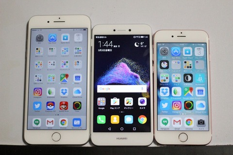 画像を見る左から5.5インチのiPhone 7 Plus、5.2インチのnova lite、4.7インチのiPhone 6s