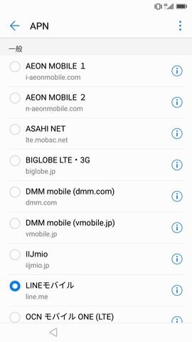 初期設定画面。さすがに日本語が選択されており、比較的新しいMVNOのLINEモバイルのアクセスポイント(APN)もきちんとプリセット