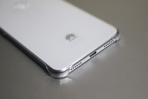 画像を見るディスプレイの下にはHUAWEIロゴのみで、ホームボタンなどは画面内に表示するソフトウェアボタンを採用