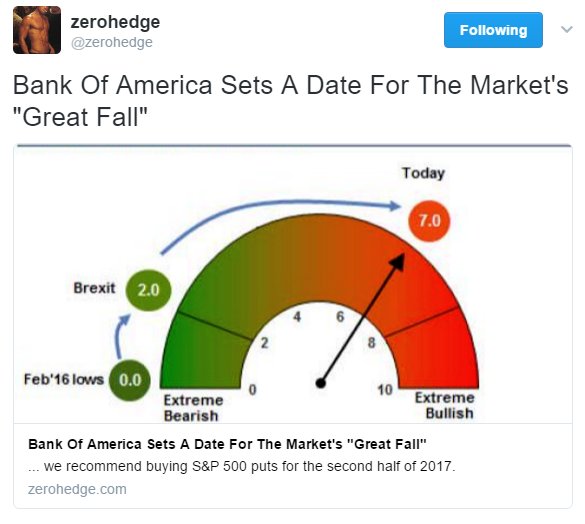 バンク・オブ・アメリカは、投資家たちが極度に楽観的になっていることを指摘し、下げに備えてS&P500指数のプットオプション買いを勧めています。