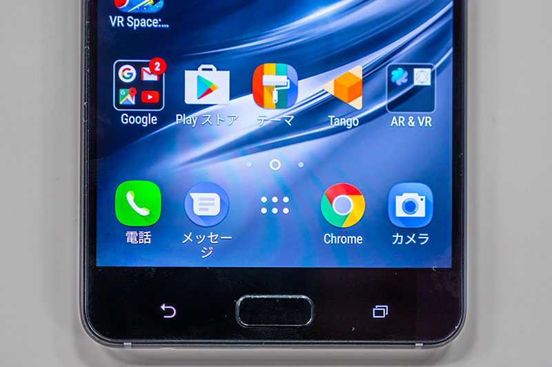 前面のデザインは比較的オーソドックスなAndroidスマホといった印象で、特に奇抜なデザインやカラー処理が行われているわけではない。一方で有機EL独特の発色がこれまでのASUS製スマホにはない雰囲気を醸し出していると感じた。