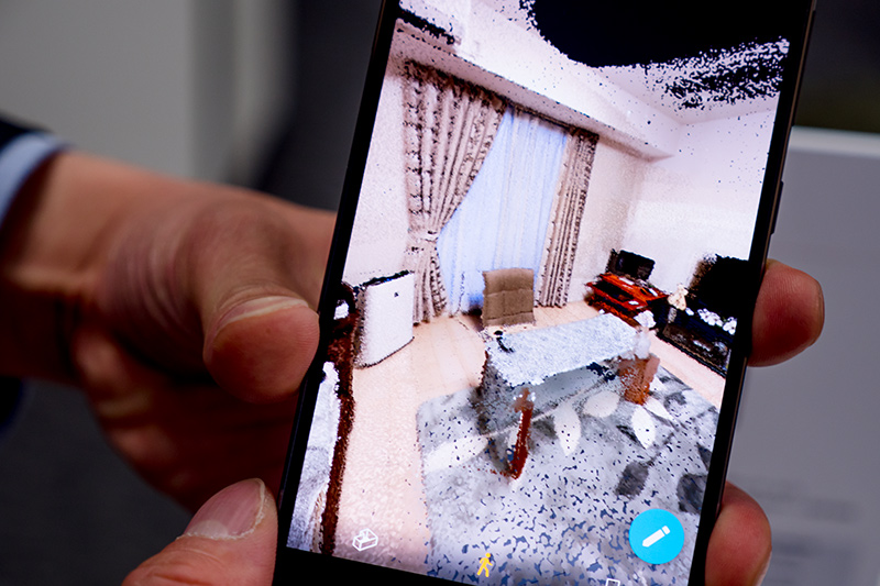 AR機能では、空間を認識したゲームやキャラクター合成ができるほかに立体物のスキャンをすることも可能だ。動画で撮影するようにカメラを被写体に向けるだけで3D化できるのは面白い機能だ。一方で、サンプリングするポイントが少ないため、拡大していくと絵が荒れてしまうようだ。