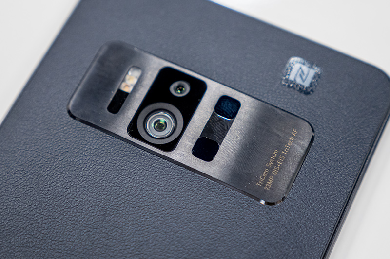背面カメラはメインとなるソニー製の約2300万画素イメージセンサー(大きなレンズ部分)と、その上にTangoのためのモーショントラッキングカメラ、右隣には深度カメラその下には距離をスキャンするための赤外線がある。ASUSではこのTangoのための仕組みを「ASUS TriCam(トライカム)システム」と呼んでいる。