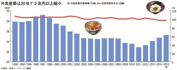 リンク先を見る外食産業は20年で2兆円以上縮小