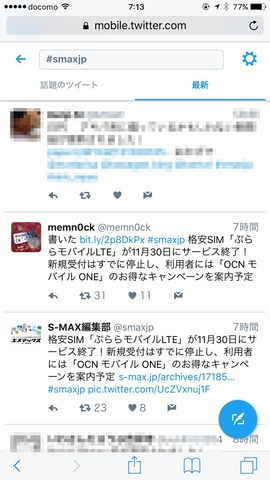 このアイコンを押せば、毎回、@smaxjpのツイートがチェックできるようになります。他にもリストも同様ですし、Twitter Liteで検索した結果なども同じようにブックマークやホーム画面に貼り付ければすぐにチェックできるようになります。